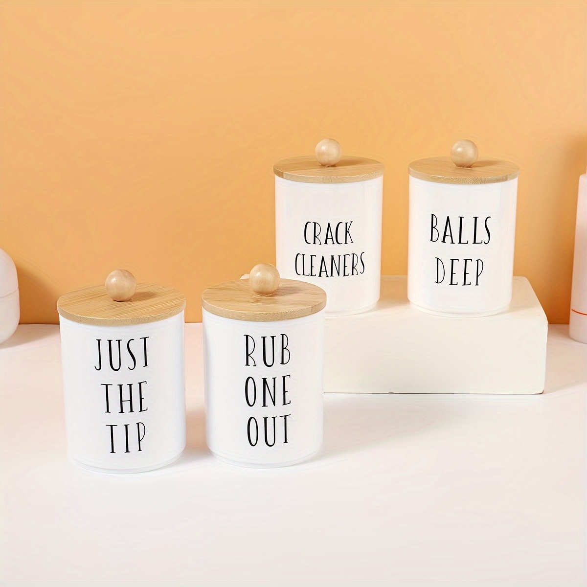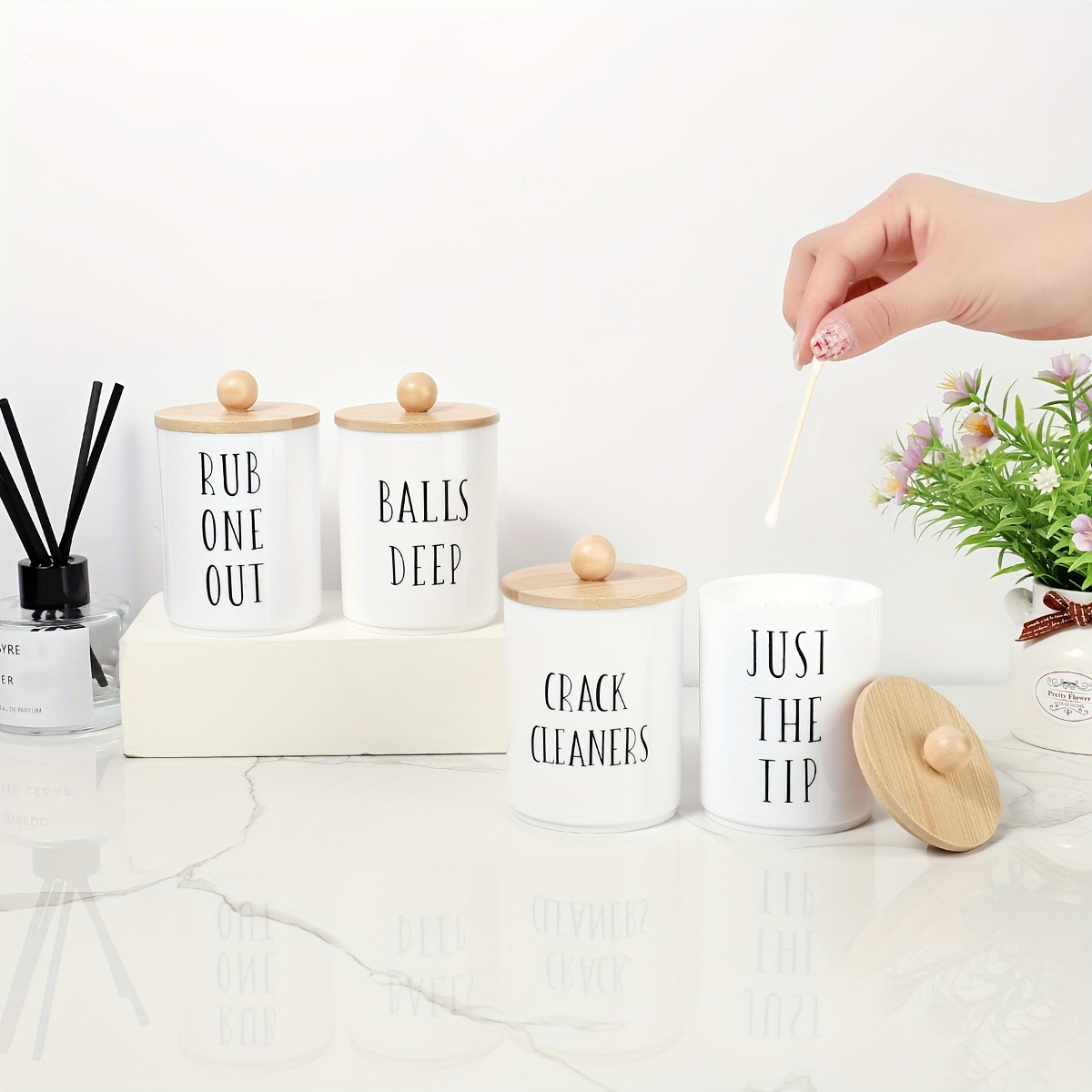 [4pcs Boho Chic Swab Holder Set] 4pcs Boho Chic Swab Holder Set with Lids - 10oz White Plastic Canisters for Bathroom Organization, Perfect for Swabs, Balls, Pads & Floss, Storage Accessories, Vanity Essential Containers